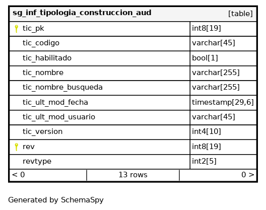 | sg_inf_tipologia_construccion_aud_pkey | Primary key | Asc/Asc | tic_pk + rev |