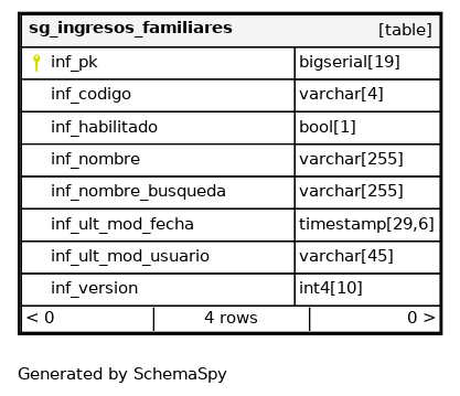 | inf_pk | bigserial | 19 | √ | nextval('catalogo.sg_ingresos_familiares_inf_pk_seq'::regclass) |