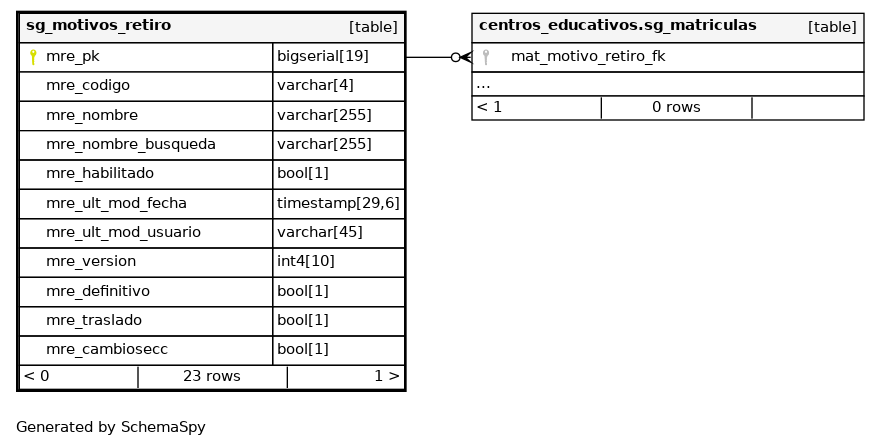 | sg_motivos_retiro_pkey | Primary key | Asc | mre_pk |