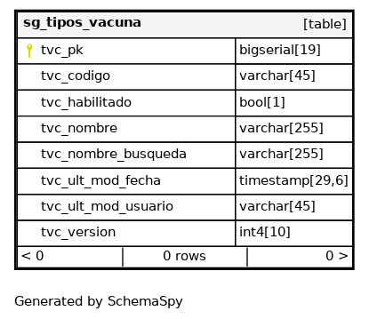| tvc_pk | bigserial | 19 | √ | nextval('catalogo.sg_tipos_vacuna_tvc_pk_seq'::regclass) |