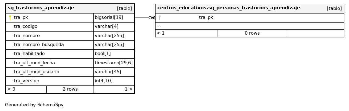 | sg_trastornos_aprendizaje_pkey | Primary key | Asc | tra_pk |