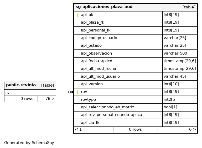 | sg_aplicaciones_plaza_aud_pkey | Primary key | Asc/Asc | apl_pk + rev |