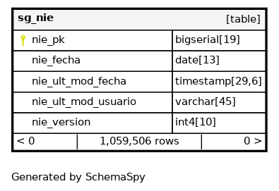 | sg_nie_pkey | Primary key | Asc | nie_pk |