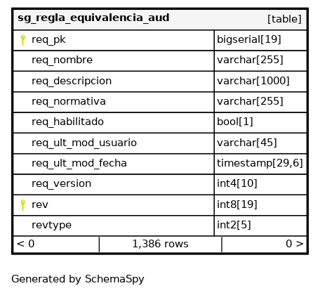 | sg_regla_equivalencia_aud_pkey | Primary key | Asc/Asc | req_pk + rev |