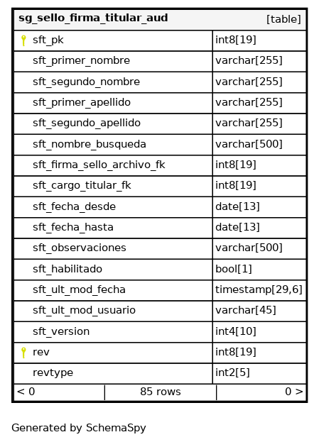 | sg_sello_firma_titular_aud_pkey | Primary key | Asc/Asc | sft_pk + rev |