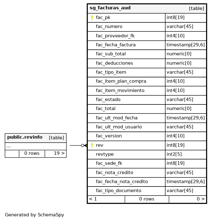 | sg_facturas_aud_pkey | Primary key | Asc/Asc | fac_pk + rev |