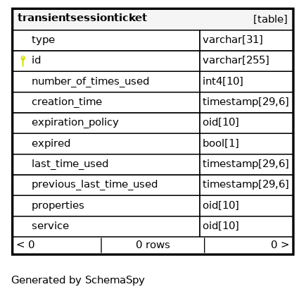 | transientsessionticket_pkey | Primary key | Asc | id |